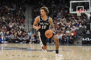 第一節(jié),馬刺球員索漢手感不佳,打了7分鐘6投僅1中,三分3中0拿到2分2籃板1助攻,正負(fù)值-4。