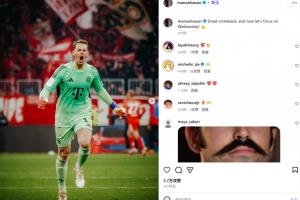 諾伊爾曬出自己的慶祝照,并配文:“偉大的逆轉!現(xiàn)在讓我們專注于周三的比賽!”