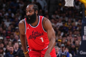 全場(chǎng)比賽,快船球星哈登出戰(zhàn)35分鐘,26中17,三分16中10得到55分3板7助攻1搶斷。
