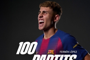此役是費(fèi)爾明的諾坎普首秀,也是他為巴薩出戰(zhàn)的第100場比賽,巴薩官方社媒曬出海報(bào),祝賀他達(dá)成巴薩百場里程碑。