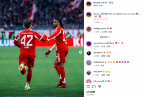 體育資訊11月23日訊 拜仁在本輪德甲焦點戰(zhàn)主場6-2逆轉(zhuǎn)弗賴堡,17歲小將卡爾在上半場和奧利塞相互傳射,幫助球隊扳平比分。