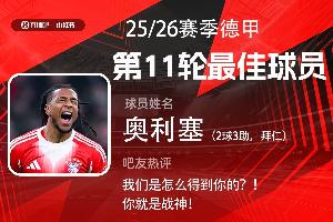 第十一輪評選結(jié)果結(jié)出爐,奧利塞2射3傳超神表現(xiàn),幫助拜仁讓2追6擊敗弗萊堡,獲得吧友超4.2萬票支持。奧利塞毫無懸念當(dāng)選【體育資訊X小紅書德甲第11輪最佳球員】!