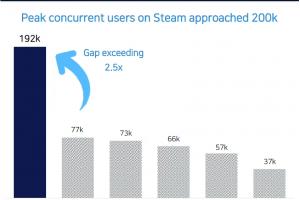 開發(fā)商 Shift Up 官方圖表顯示,《劍星》Steam 最高同時在線玩家數(shù)一度曾達(dá)到 19.2 萬人,在曾推出 PC 版本的 PlayStation 獨占游戲中位列第一。(第二名是《對馬島之魂》7.7萬人)
