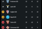 【預備隊積分榜】2025-26賽季#意甲# 預備隊聯(lián)賽第12輪積分榜: