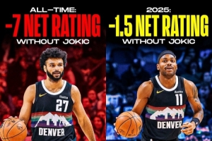 目前,當約基奇不在場上時,丹佛掘金隊的凈效率值為-1.5!