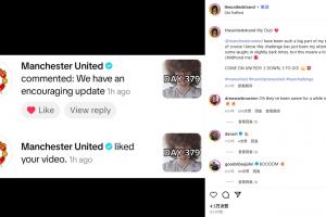 體育資訊10月20日訊 本輪英超曼聯(lián)2-1擊敗利物浦,取得兩連勝。賽后著名曼聯(lián)球迷“蓄發(fā)哥”發(fā)布社媒曬出截圖,從圖中可以看到,曼聯(lián)官方社媒點(diǎn)贊了他的視頻,并評論道:我們有一個令人鼓舞的進(jìn)展。