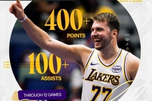 此役過后,東契奇本賽季出戰(zhàn)12場已達(dá)成400分100助,成為歷史上單賽季達(dá)此數(shù)據(jù)最快的球員。