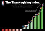 感恩節(jié)前,30支球隊(duì)勝率與季前賽時(shí)預(yù)測(cè)對(duì)比??
