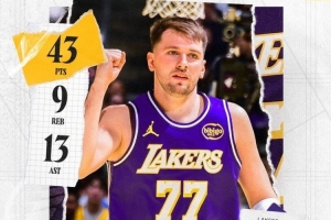 賽后,湖人官方發(fā)布東契奇本場數(shù)據(jù)海報(bào)。