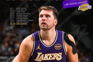 這是東契奇湖人生涯第7次40+,超越魔術(shù)師升至隊(duì)史第十,賽后湖人發(fā)布東契奇40+隊(duì)史前十海報(bào)。