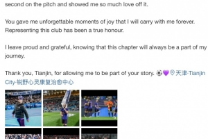 今日阿代米更新個(gè)人微博,向天津球迷告別。他寫道: