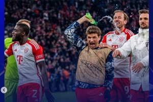 2017年3月十六強(qiáng)戰(zhàn)次回合:沃爾科特首開記錄,科斯切爾尼染紅。萊萬扳平比分,羅本、道格拉斯·科斯塔建功,比達(dá)爾雙響,拜仁再次5-1大勝。