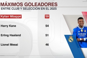 以下為足壇2025年度各項賽事進球榜(俱樂部+國家隊):