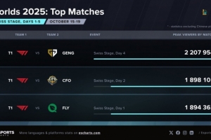 體育資訊10月21日訊 數(shù)據(jù)網(wǎng)站Esports Charts發(fā)布了S15瑞士輪目前的觀賽數(shù)據(jù);