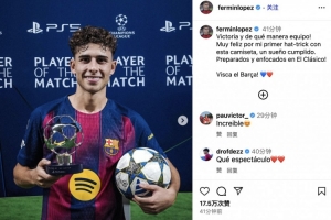 體育資訊10月22日訊 在本輪歐冠小組賽的一場(chǎng)比賽中,巴薩主場(chǎng)6-1擊敗奧林匹亞科斯,比賽中巴薩邊鋒費(fèi)爾明上演帽子戲法。