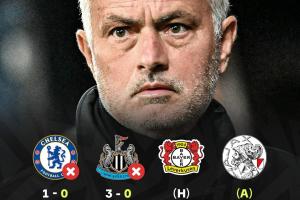 穆里尼奧時(shí)隔5年半回歸歐冠,遭遇歐冠兩連敗,先后客負(fù)切爾西和紐卡,兩度重返英倫均失利,丟4球一球未進(jìn)。