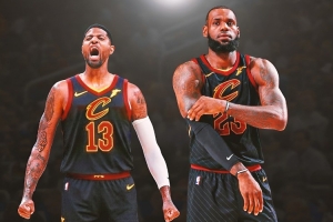 2017年總決賽剛落幕,勒布朗便與數(shù)名騎士隊員在酒店召開球員會議。他們深知需要引進(jìn)巨星才能抗衡擁有庫里與杜蘭特的勇士,而他們鎖定的目標(biāo)正是:步行者當(dāng)家球星保羅-喬治。