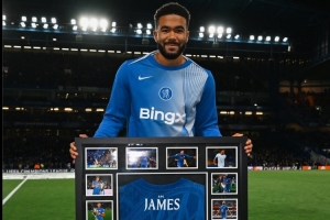體育資訊10月23日訊 切爾西在本輪歐冠主場迎戰(zhàn)阿賈克斯,隊長詹姆斯在賽前獲贈200場里程碑紀(jì)念品。